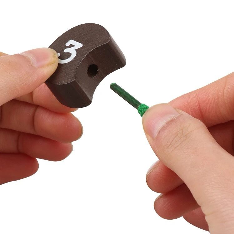 Children thread the colorful numbered beads in the correct order using the attached string, promoting both hand-eye coordination and cognitive sequencing skills.