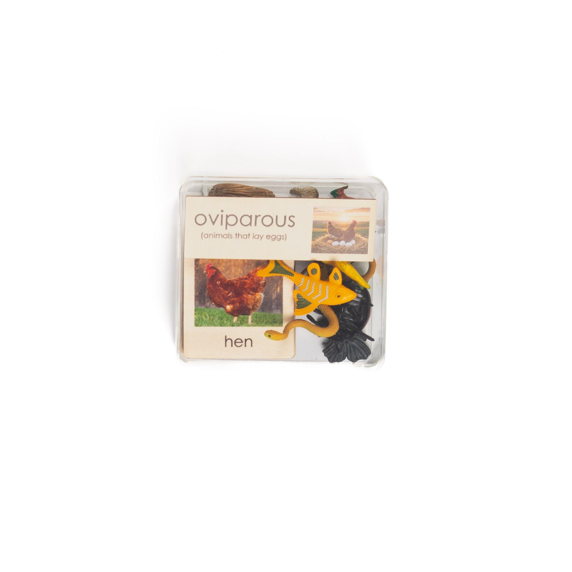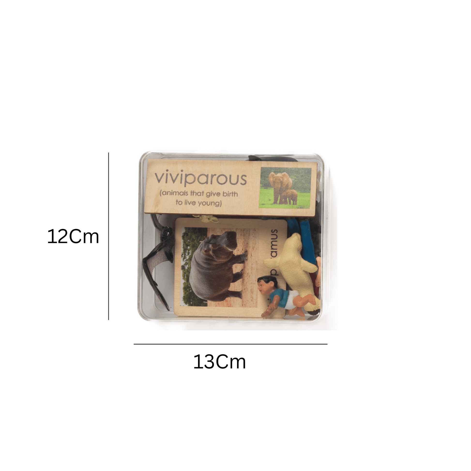 Durable clear storage box for Montessori shelf work and classification sets. Designed for easy sorting, visibility, and classroom organization.