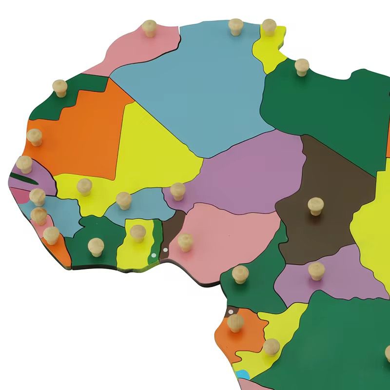 Explore the rich geography of Africa with this Montessori puzzle map featuring colorful, knobbed country pieces for tactile learning