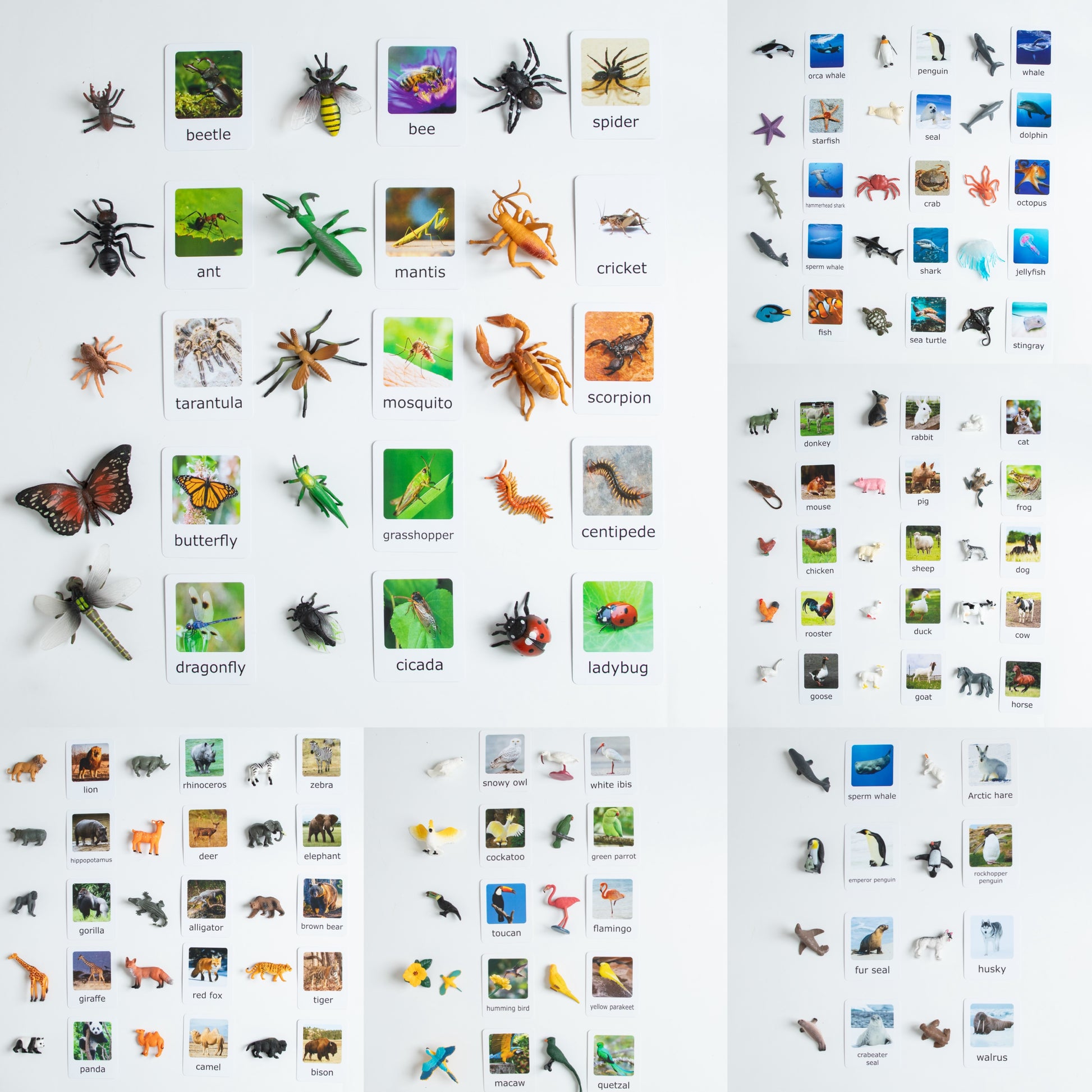 Explore 6 Montessori animal matching sets with high-quality figurines and control cards to teach classification, habitats, and zoological terms