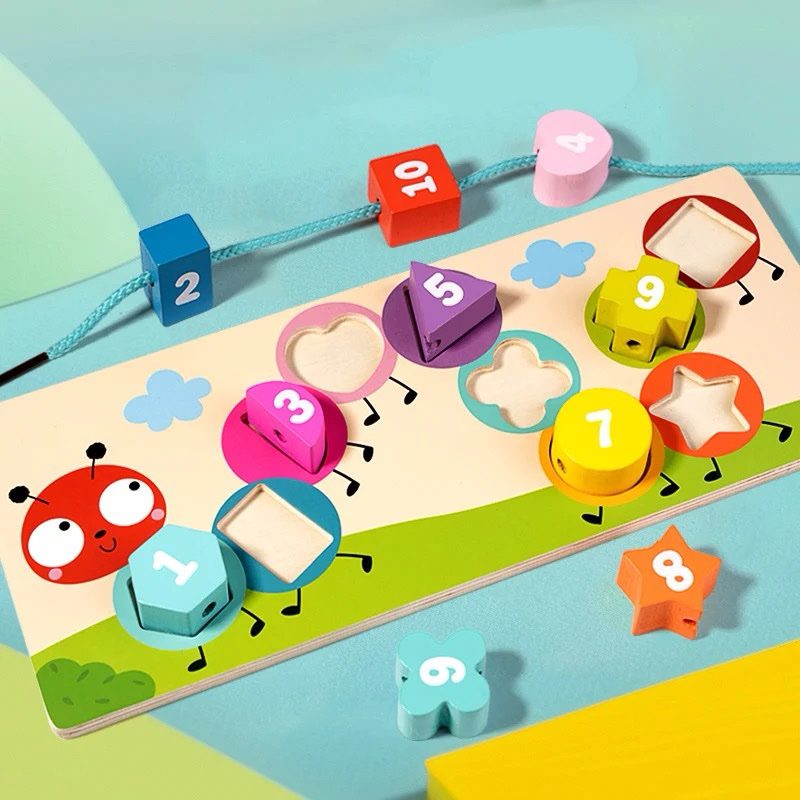 Introduce numbers, colors, and shapes with this engaging Montessori lacing toy. A fun and educational tool to build math skills and fine motor coordination in early learners.