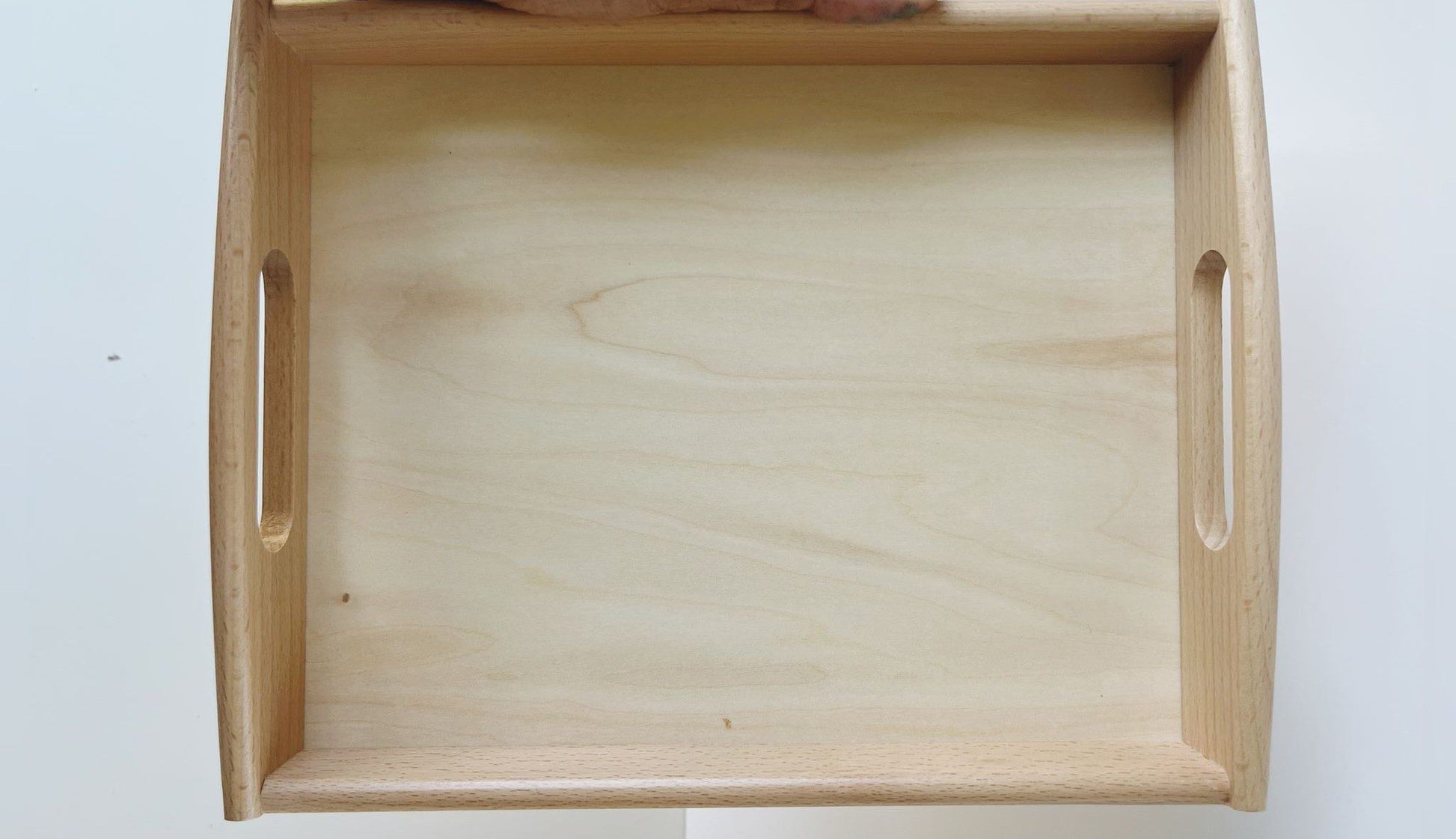 A sturdy, child-sized wooden tray ideal for Montessori practical life, sorting, and transfer activities. Lightweight and easy for small hands to carry.